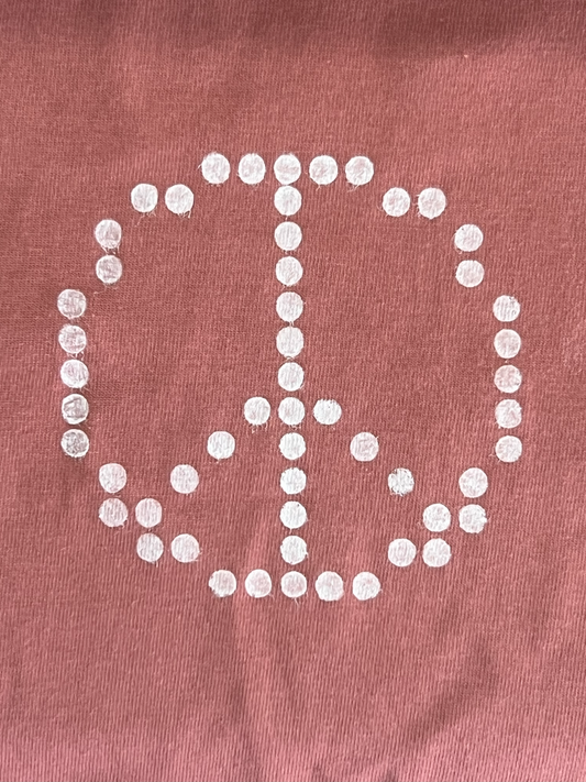 Salmon Pink Tee with Hand-Printed Silver Peace Design
