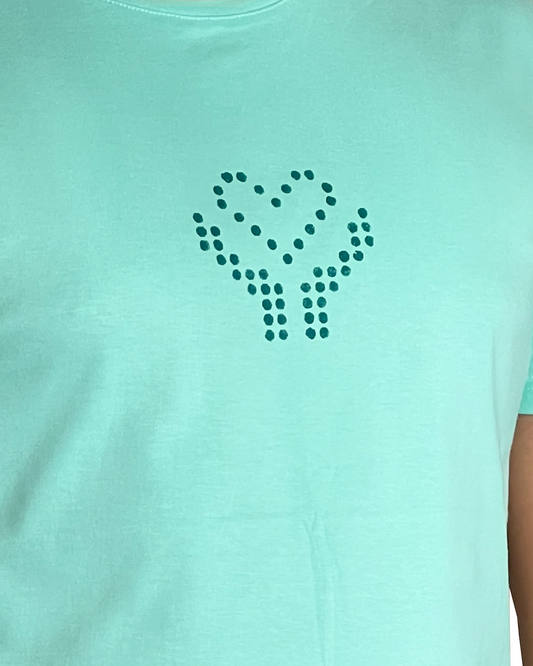 Turquoise Blue Tee with Hand-Printed Lemonade Design