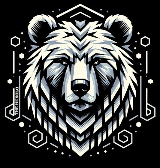 Grizzly Bear Graphic Print Black T-Shirt, 100% Cotton: THE HEXCLO