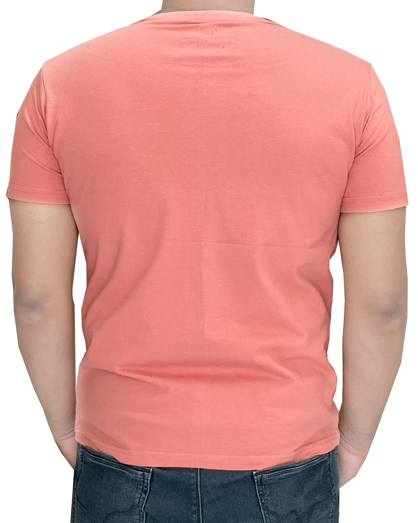 Salmon Pink Tee with Hand-Printed Silver Peace Design